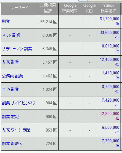 この辺まで来ると他のワードで「副業 サイドビジネス」等でも上位にきはじめています。